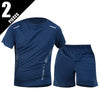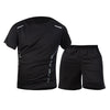 • 2-Piece Men's Summer Quick drying Sports Suit Loose And Breathable Short Sleeved T-shirt Running And Fitness Black Pocket Shorts