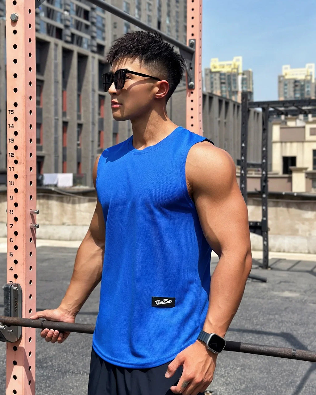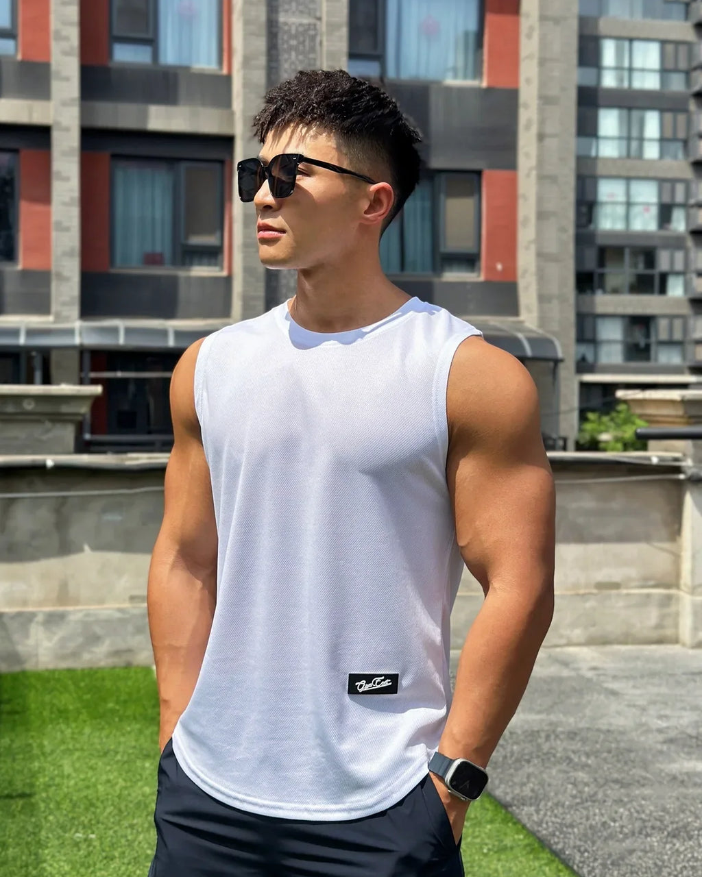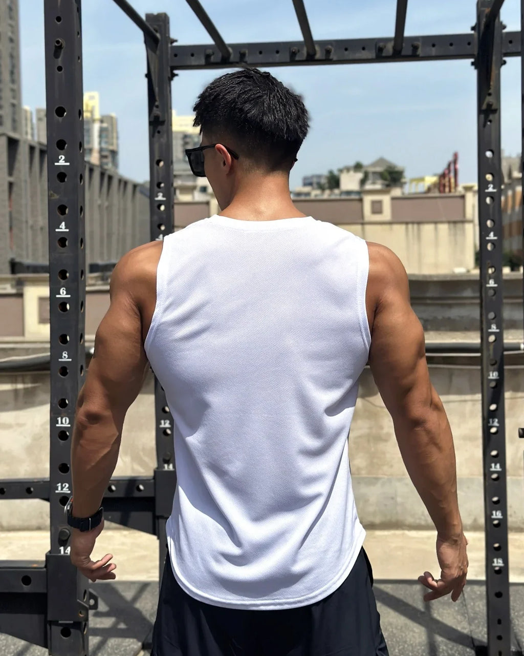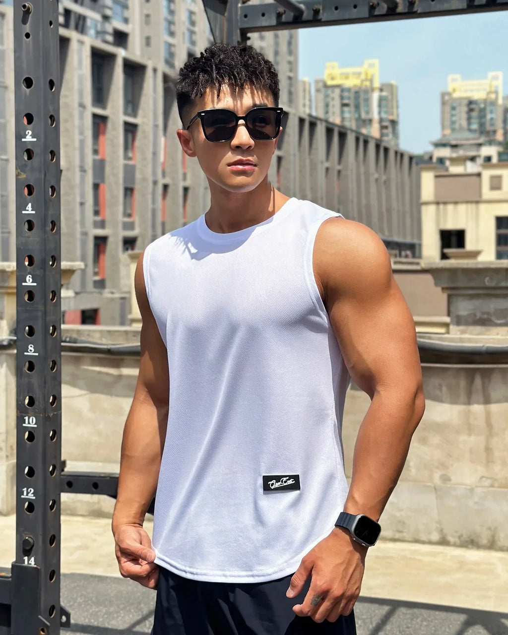 2025 Summer New Trend Men tank top Pullover Round Neck Mesh Bottom Shirt Sports Fitness Top Sleeveless Vest Quick Dry undershirt