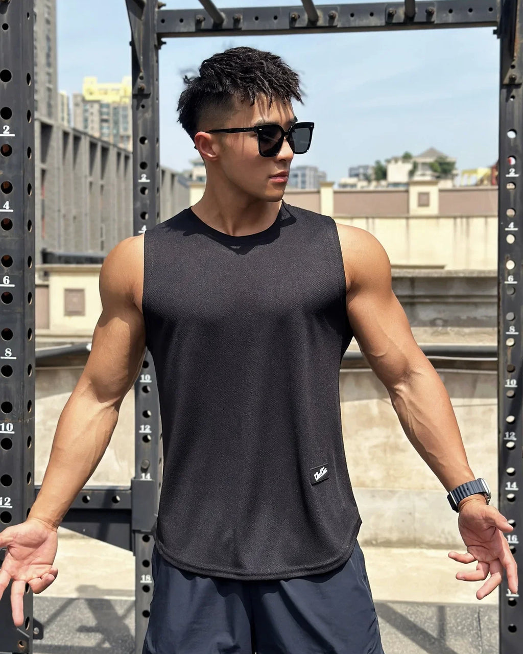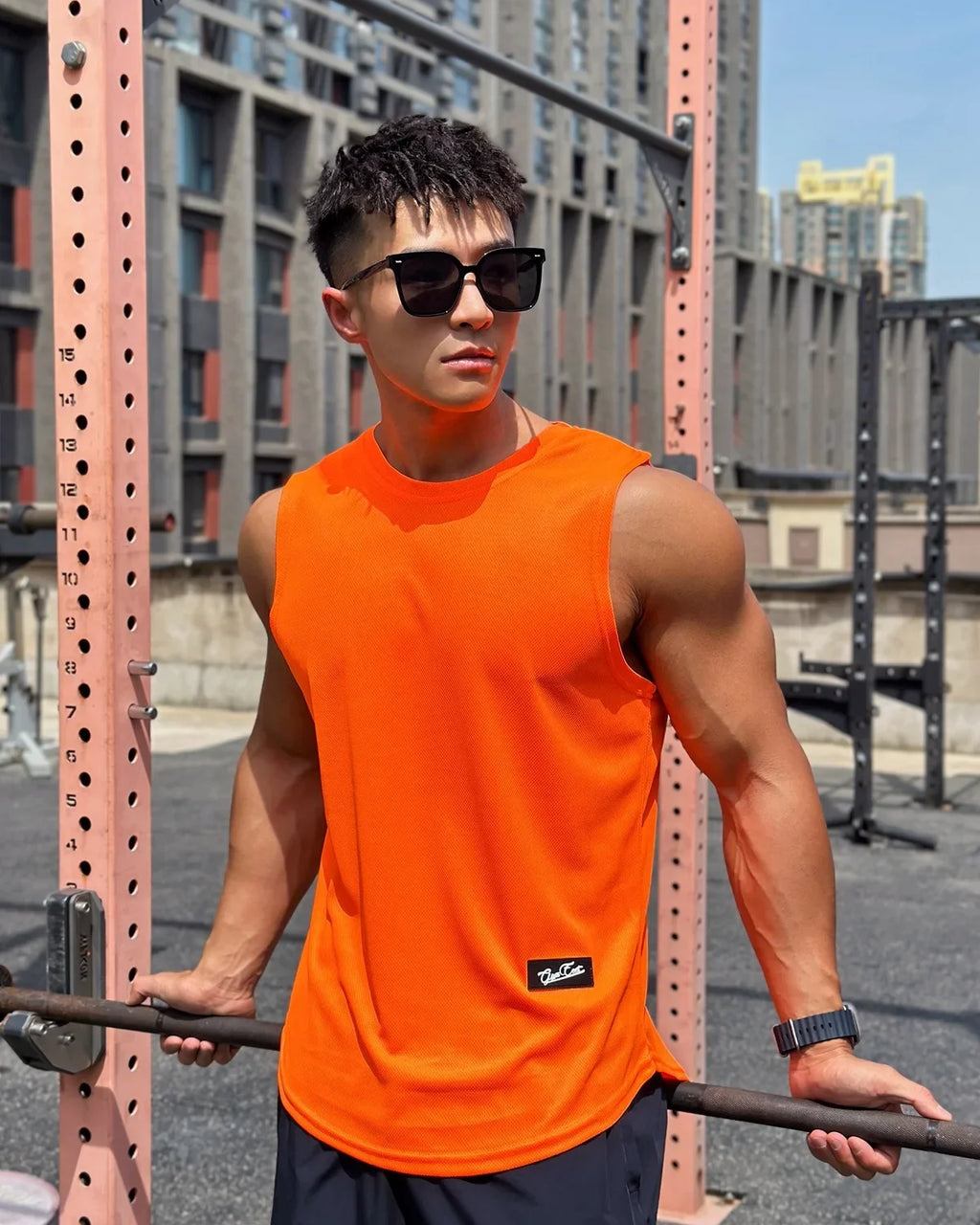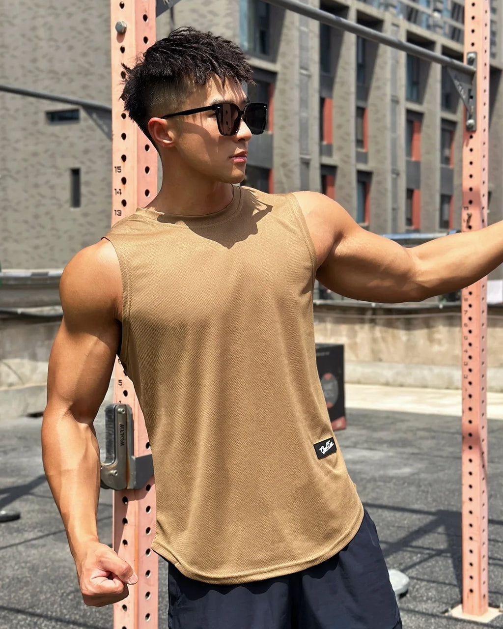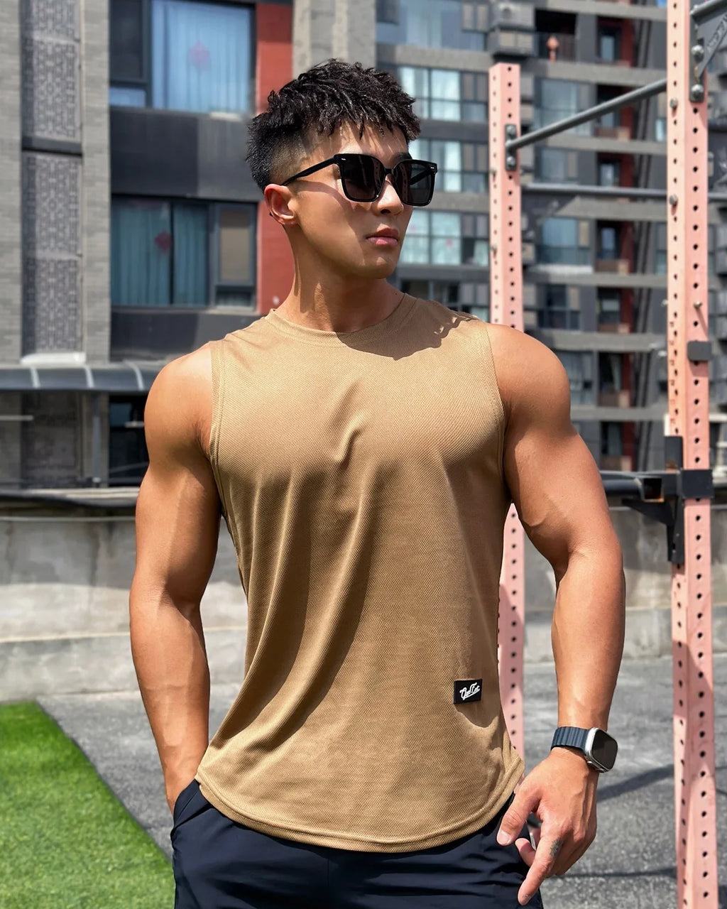 2025 Summer New Trend Men tank top Pullover Round Neck Mesh Bottom Shirt Sports Fitness Top Sleeveless Vest Quick Dry undershirt