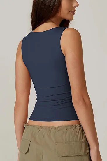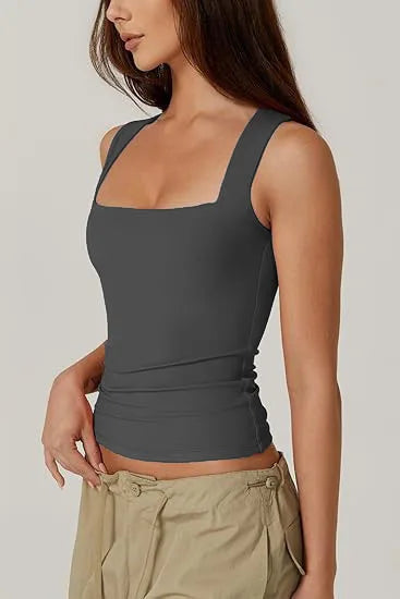 European and American women's street style spicy girl fashion square neck slim fit sleeveless vest for women