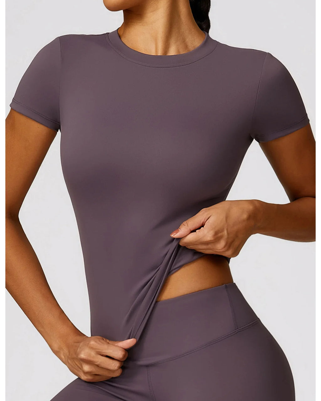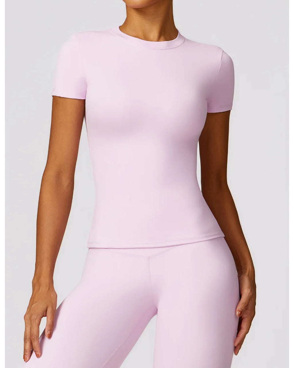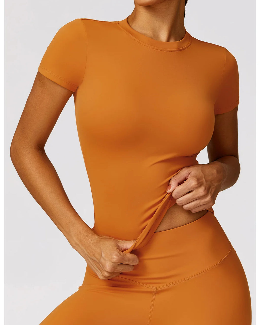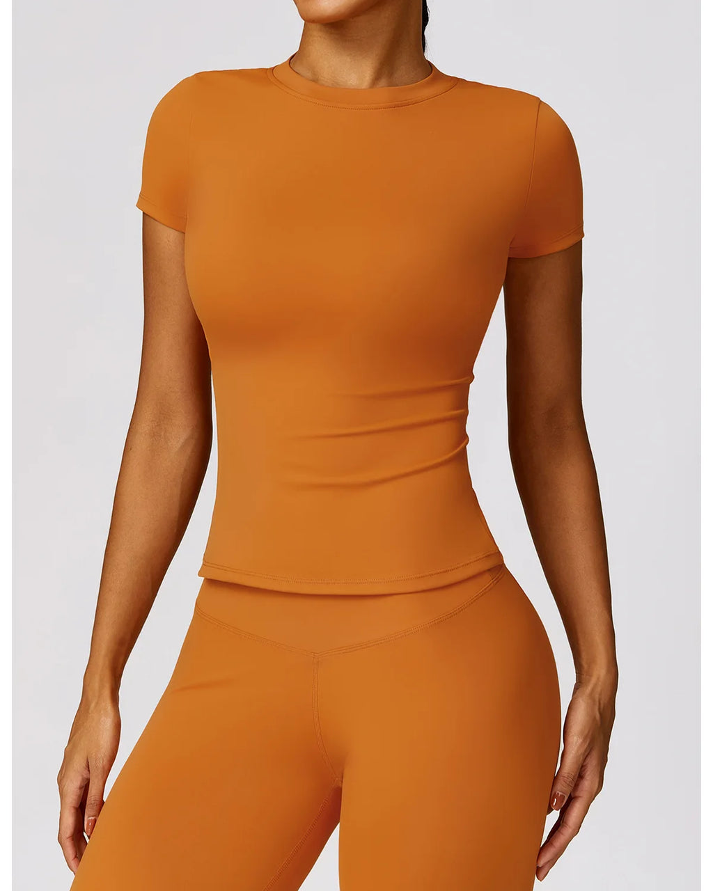 HGC Women's Sports T Shirt Summer Short Sleeve Running  Round Neck Breathable Stretchy GYM Yoga Slim Fitness Active Top Tee