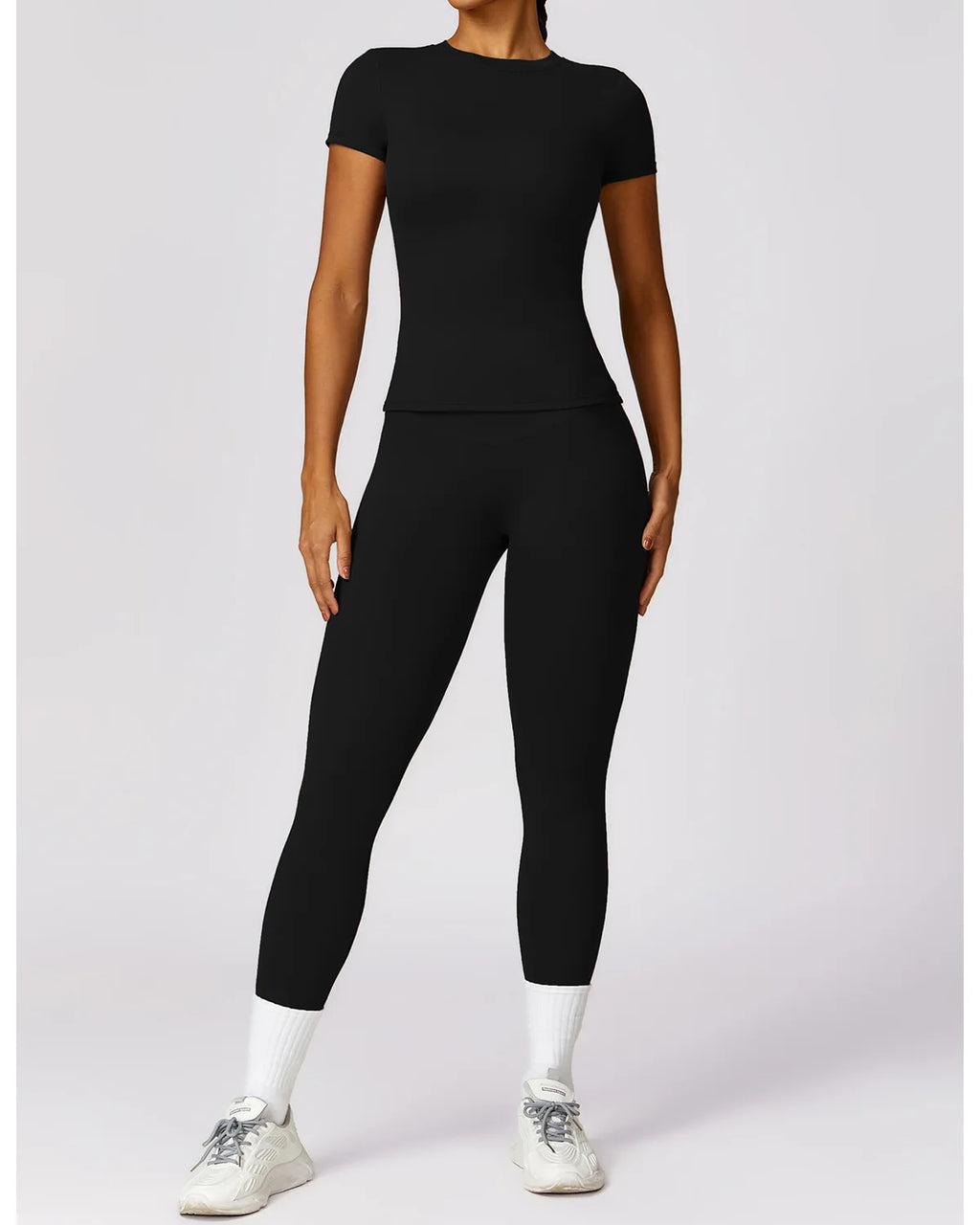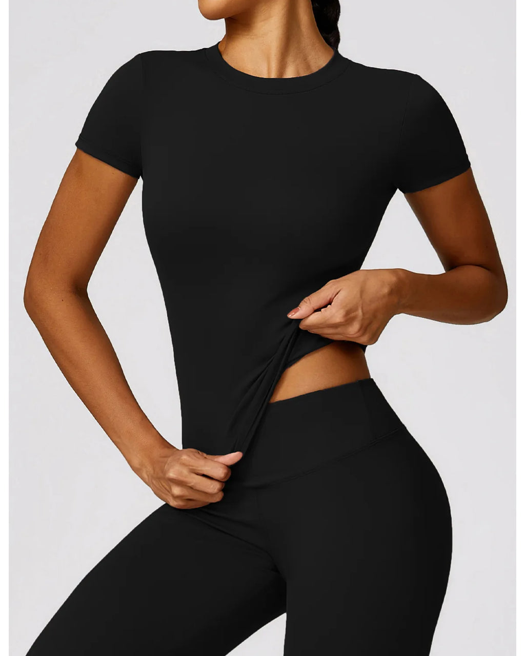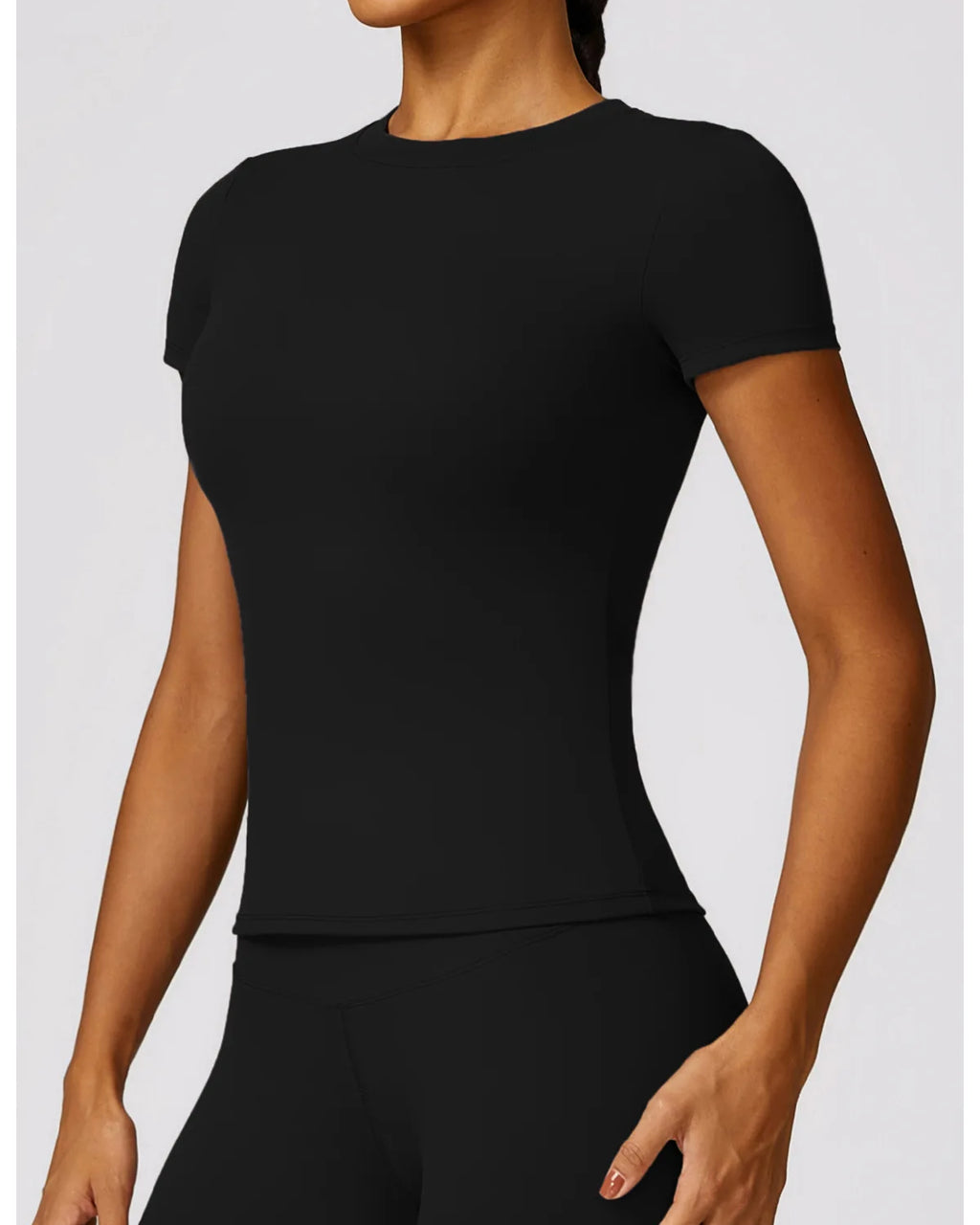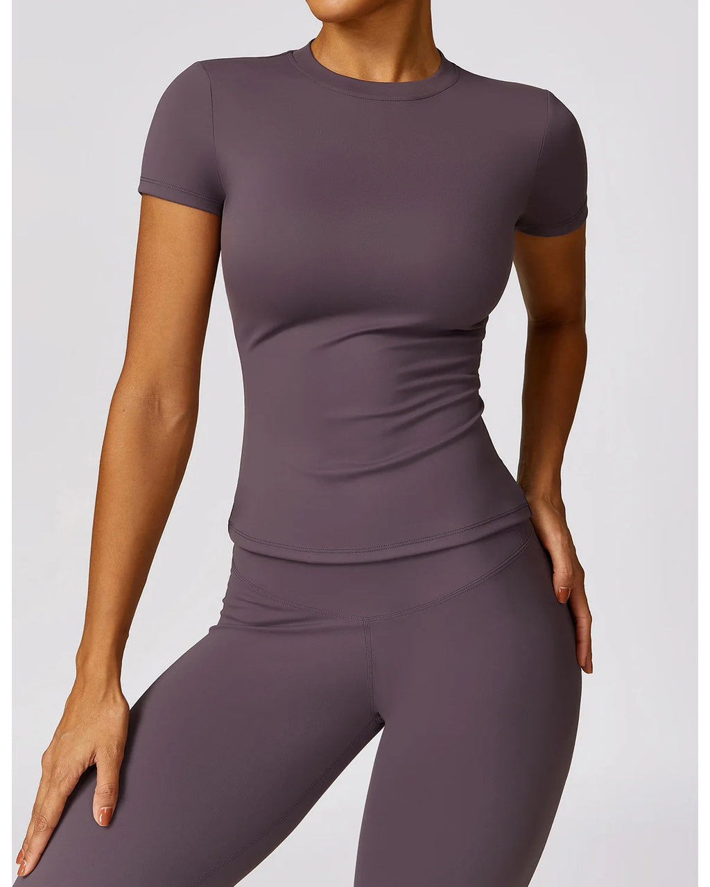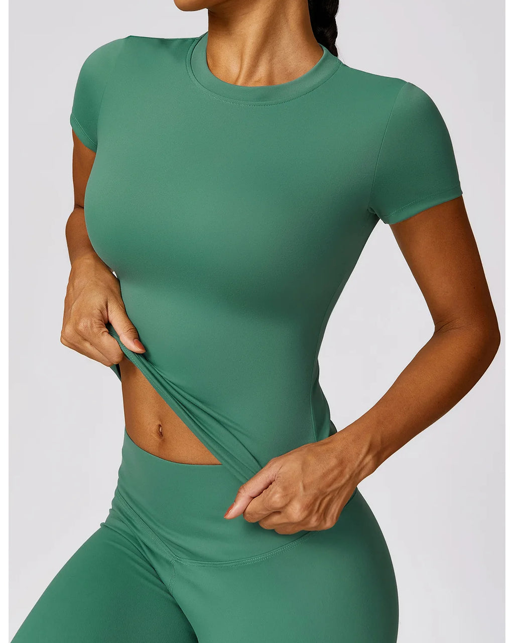 HGC Women's Sports T Shirt Summer Short Sleeve Running  Round Neck Breathable Stretchy GYM Yoga Slim Fitness Active Top Tee