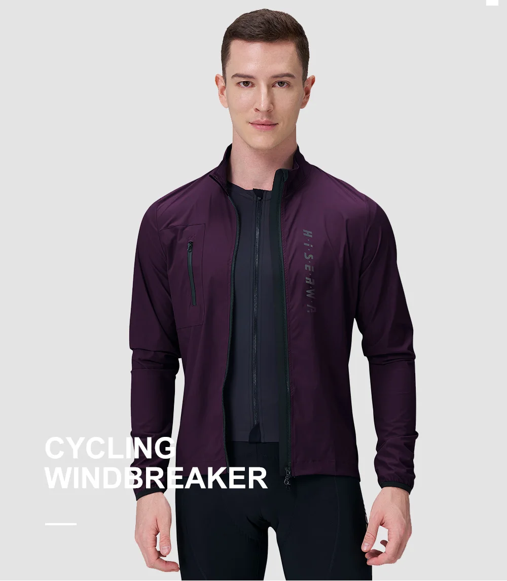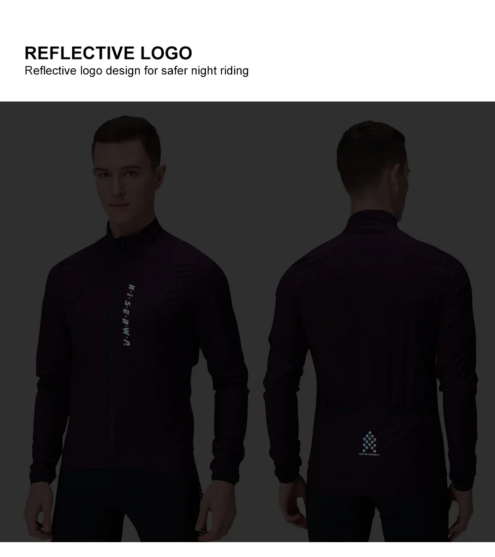 HISERWA Men Cycling Jacket Lightweight Breathable Anti-UV Cycling Windbreaker High Quality MTB Road Bike Jersey 2-Way Zipper