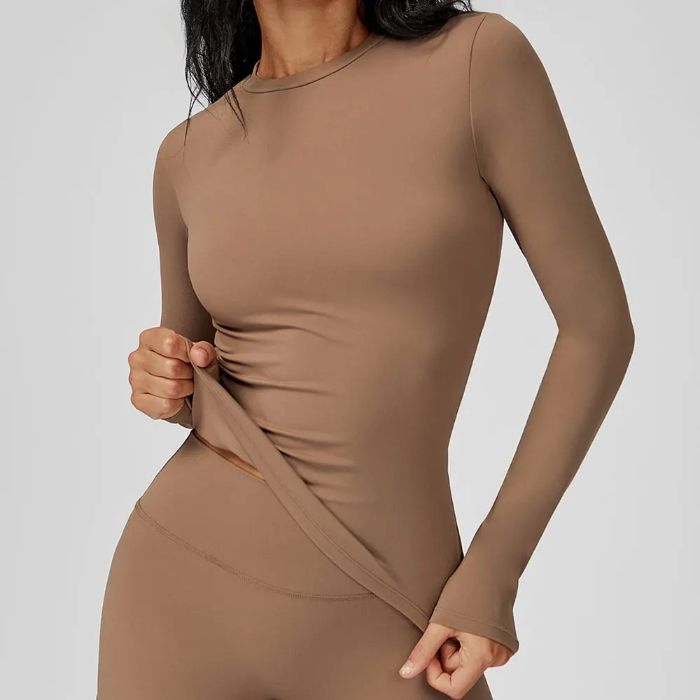 JUREN Yoga Shirts For Women Long Sleeve Fitness Running Push Up Gym Shirts Female Workout Breathable High Elastic Sports Top