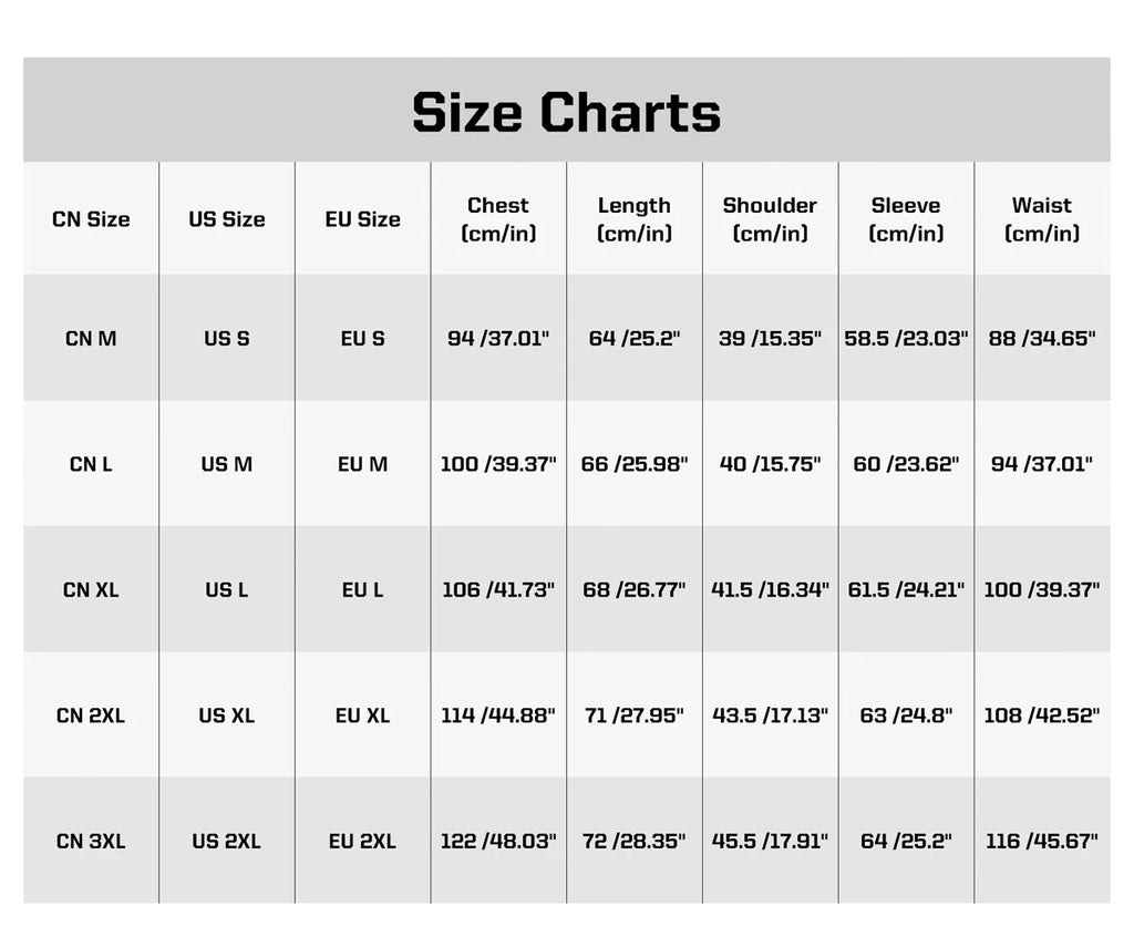 size_info: {"sizeInfoList":[{"length":{"cm":"94","inch":"37.01"},"size":"CN M(US S)","vid":-1},{"length":{"cm":"100","inch":"39.37"},"size":"CN L(US M)","vid":-2},{"length":{"cm":"106","inch":"41.73"},"size":"CN XL(US L)","vid":-3},{"length":{"cm":"114","inch":"44.88"},"size":"CN 2XL(US XL)","vid":-4},{"length":{"cm":"122","inch":"48.03"},"size":"CN 3XL(US 2XL)","vid":-5}]}