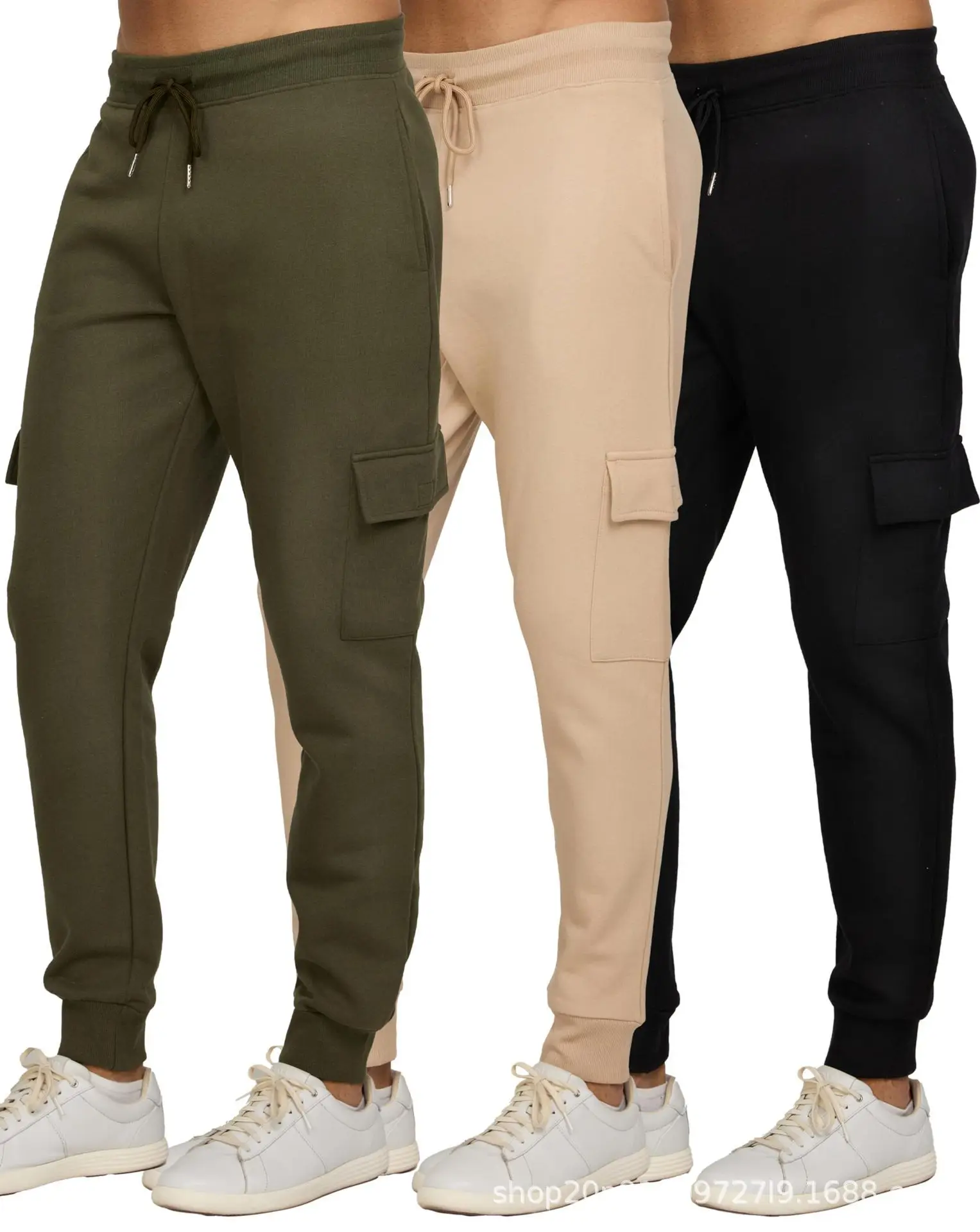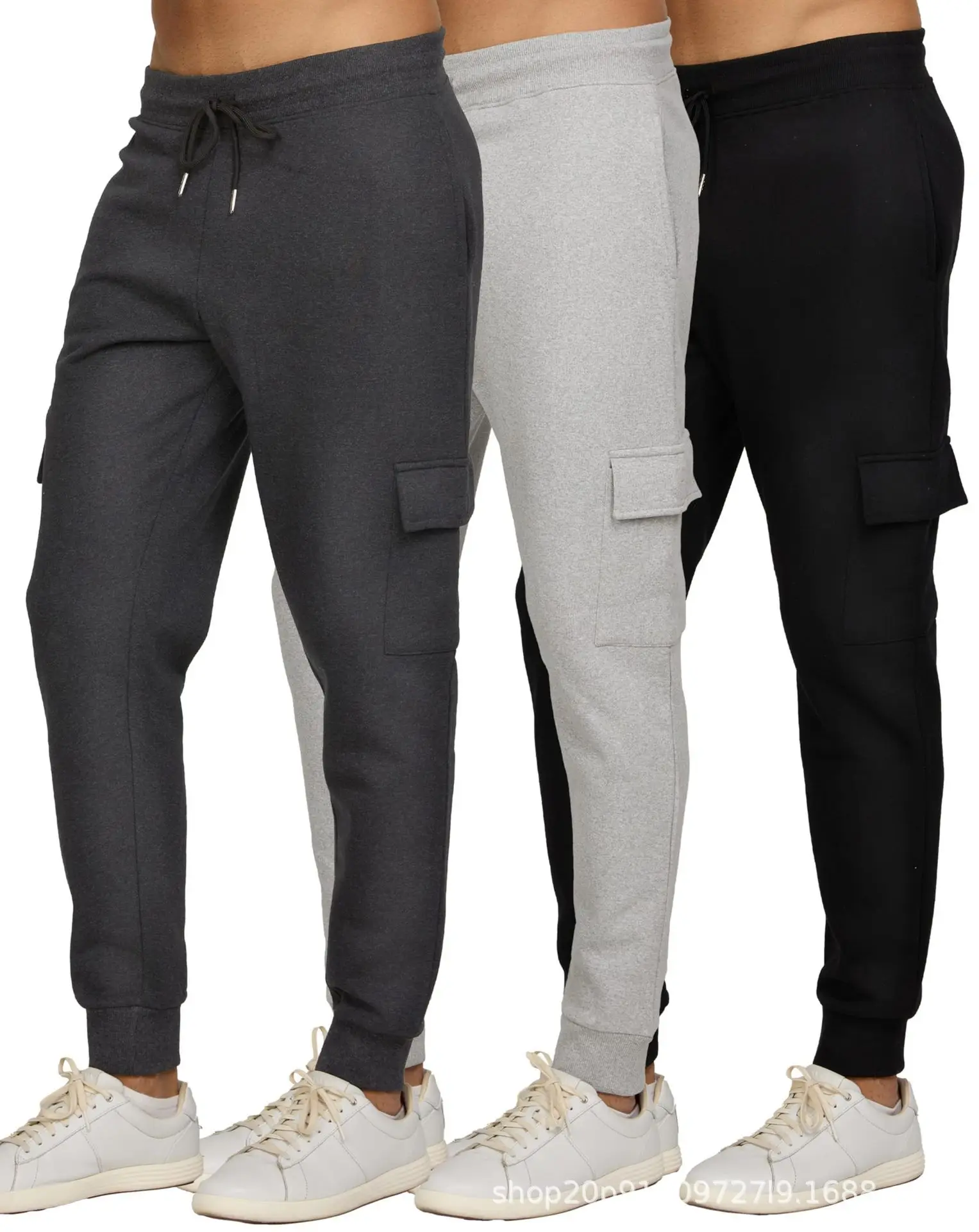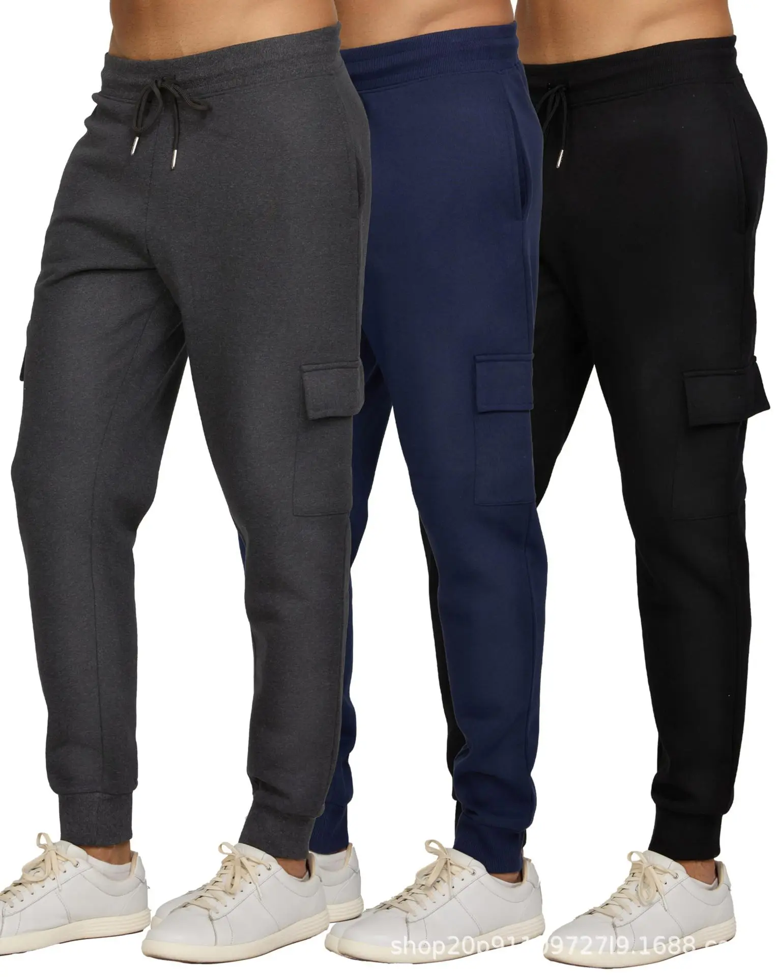 Men's Casual Fitness Long Pants Fleece Lined Cuffed Running Trousers Multi Pocket Workwear Sports Pants Low Waist Slim Fit