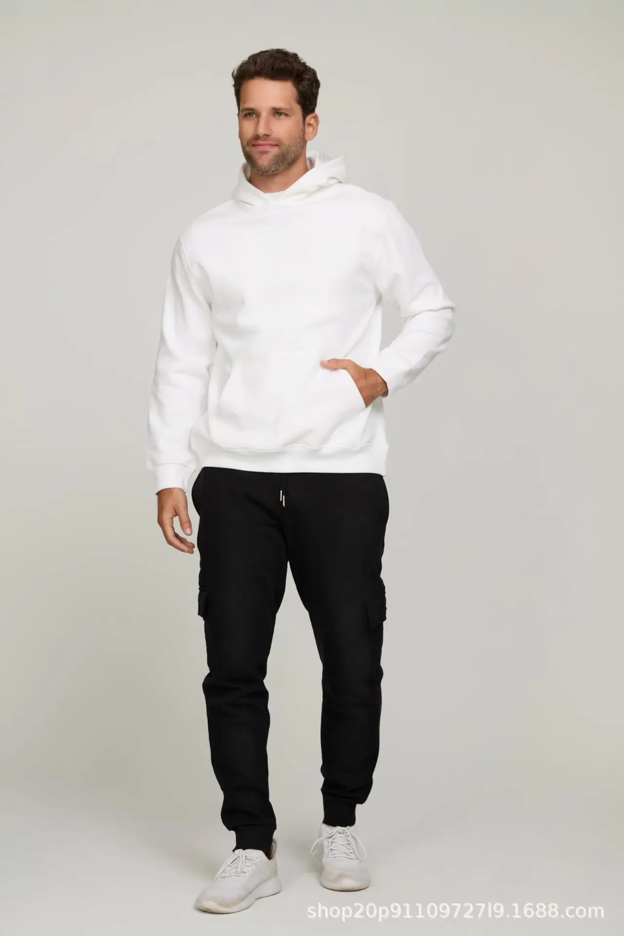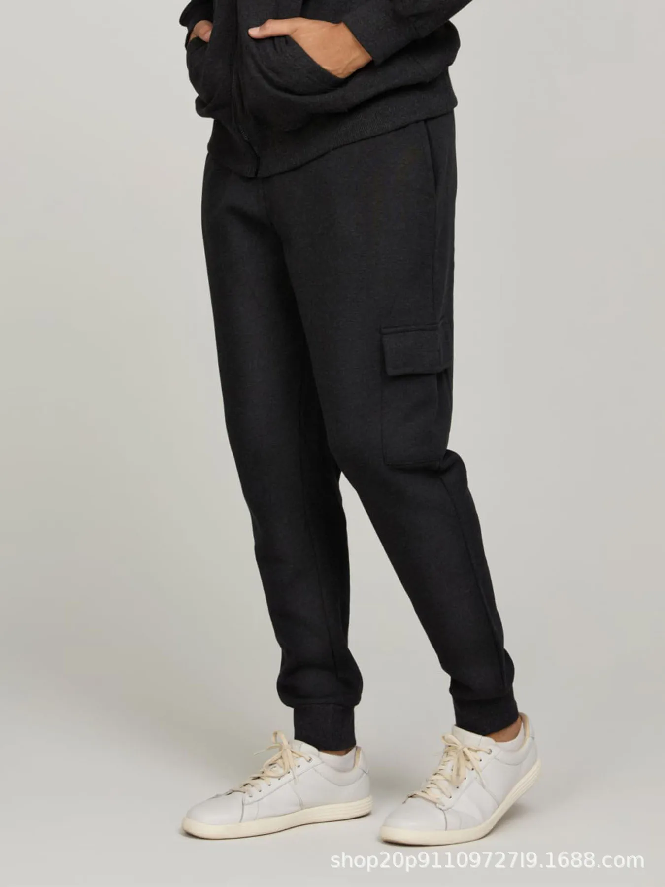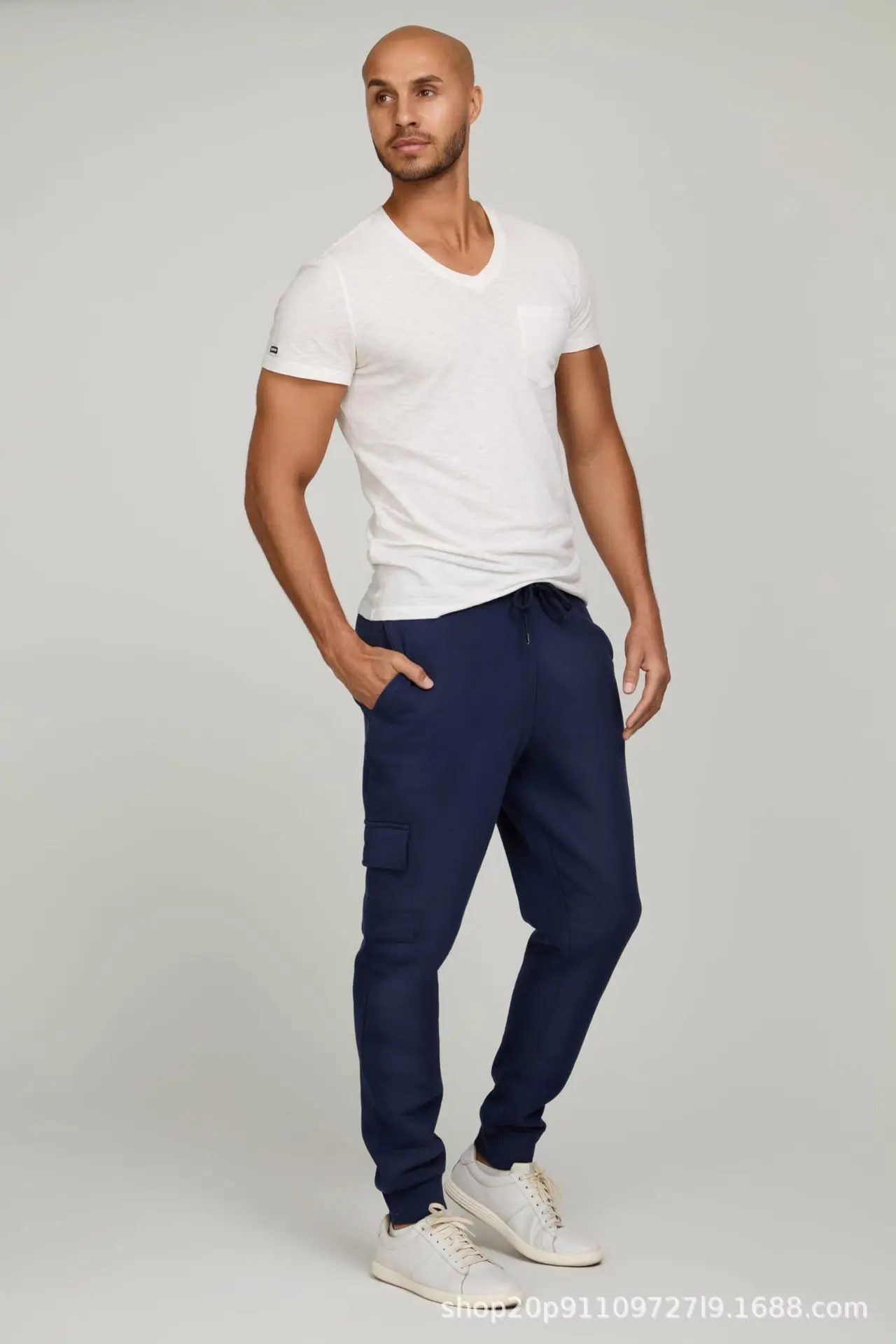 Men's Casual Fitness Long Pants Fleece Lined Cuffed Running Trousers Multi Pocket Workwear Sports Pants Low Waist Slim Fit