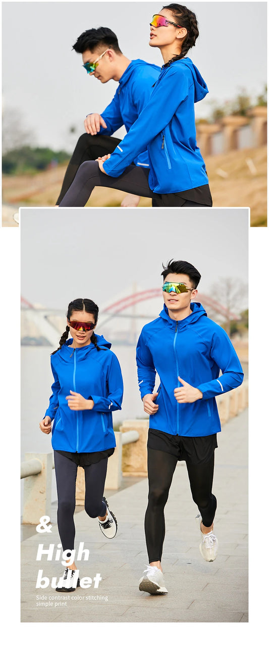 Men Women Running Jacket Lightweight Camping Hiking Windbreaker Outdoor Windproof Long-Sleeved Zipper Hoodie Sports Jacket