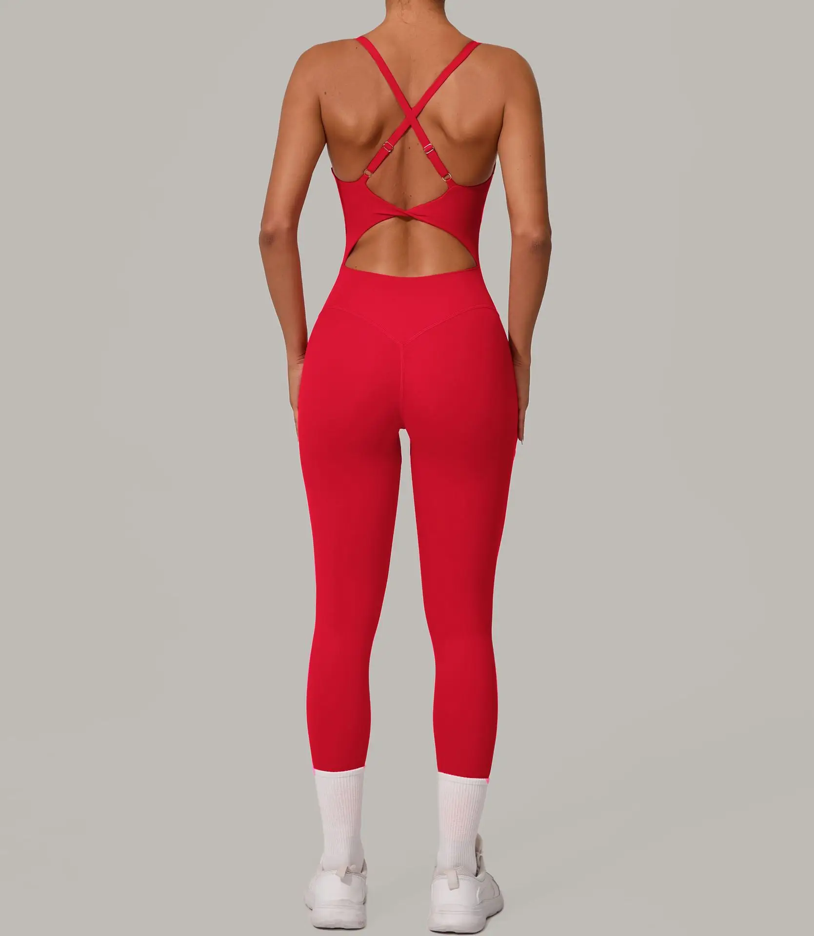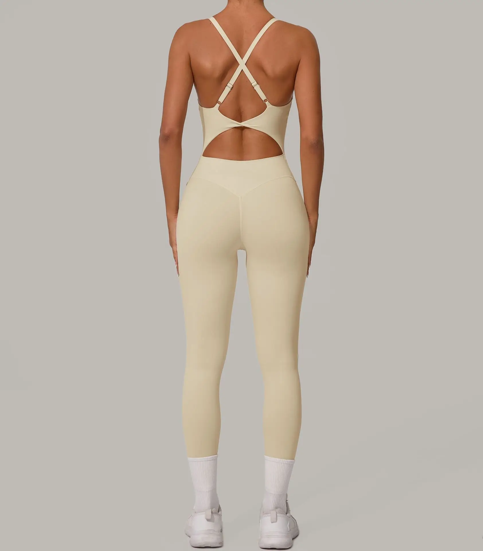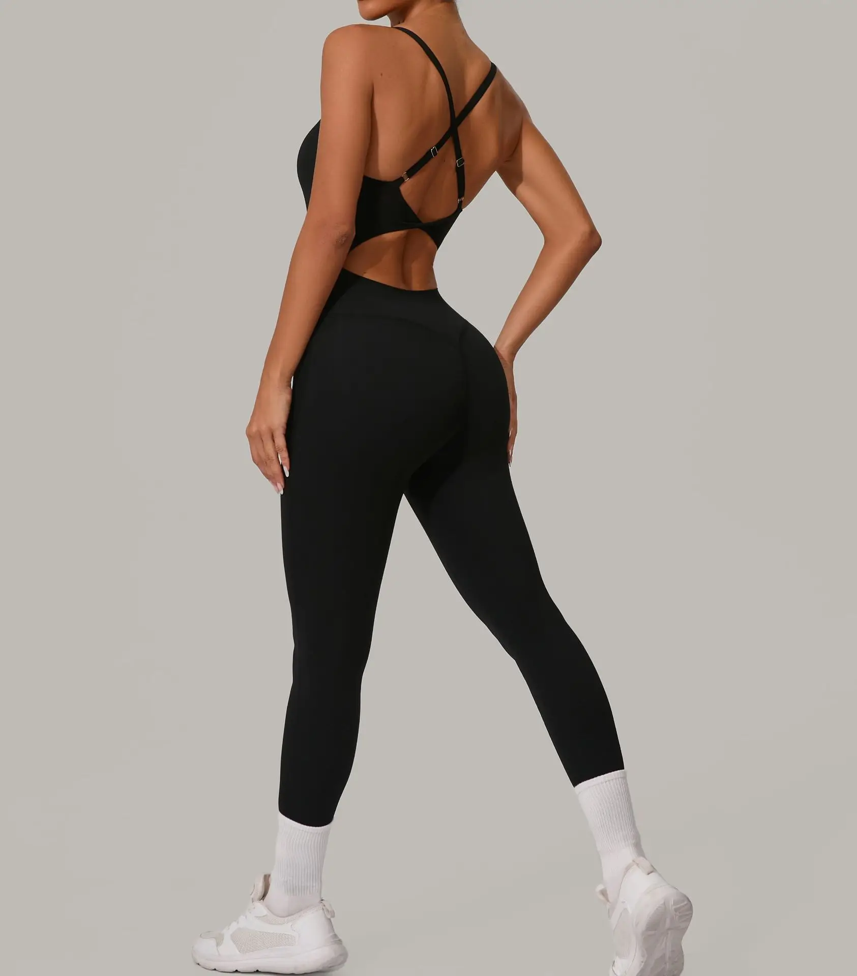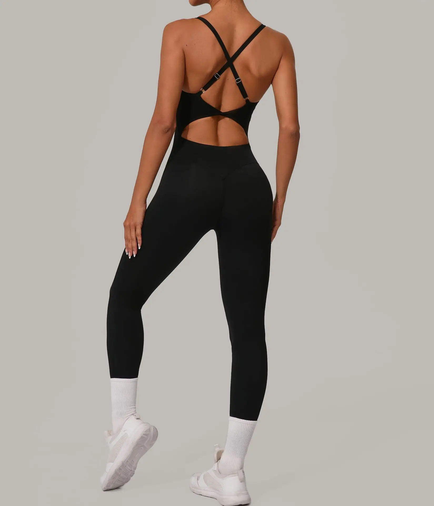 Sexy Hollow Cross Backless Sporty Tight Jumpsuit Woman Sportswear Summer One Pieces Outfit Gym Fitness Overalls Yoga Jump Suit