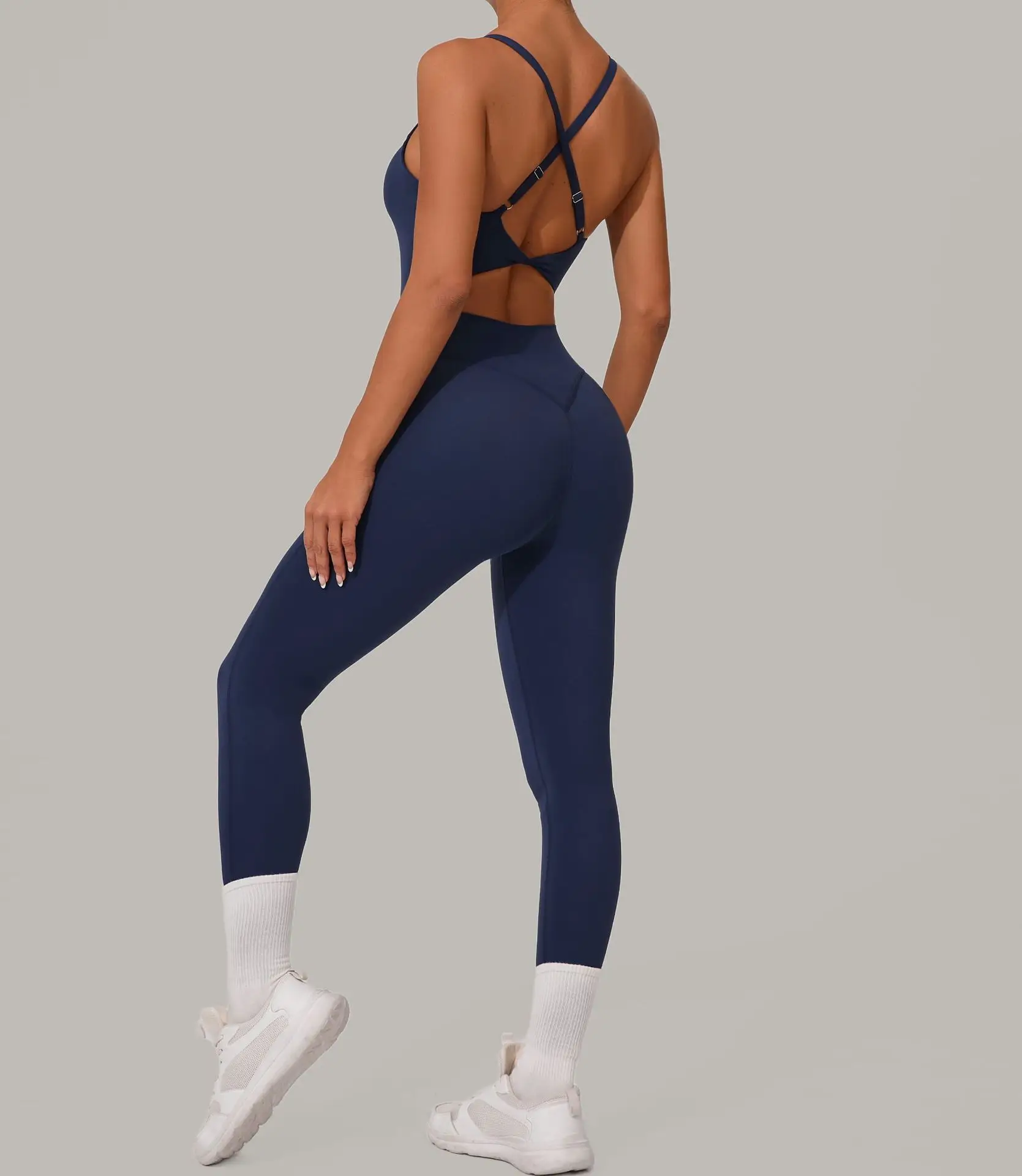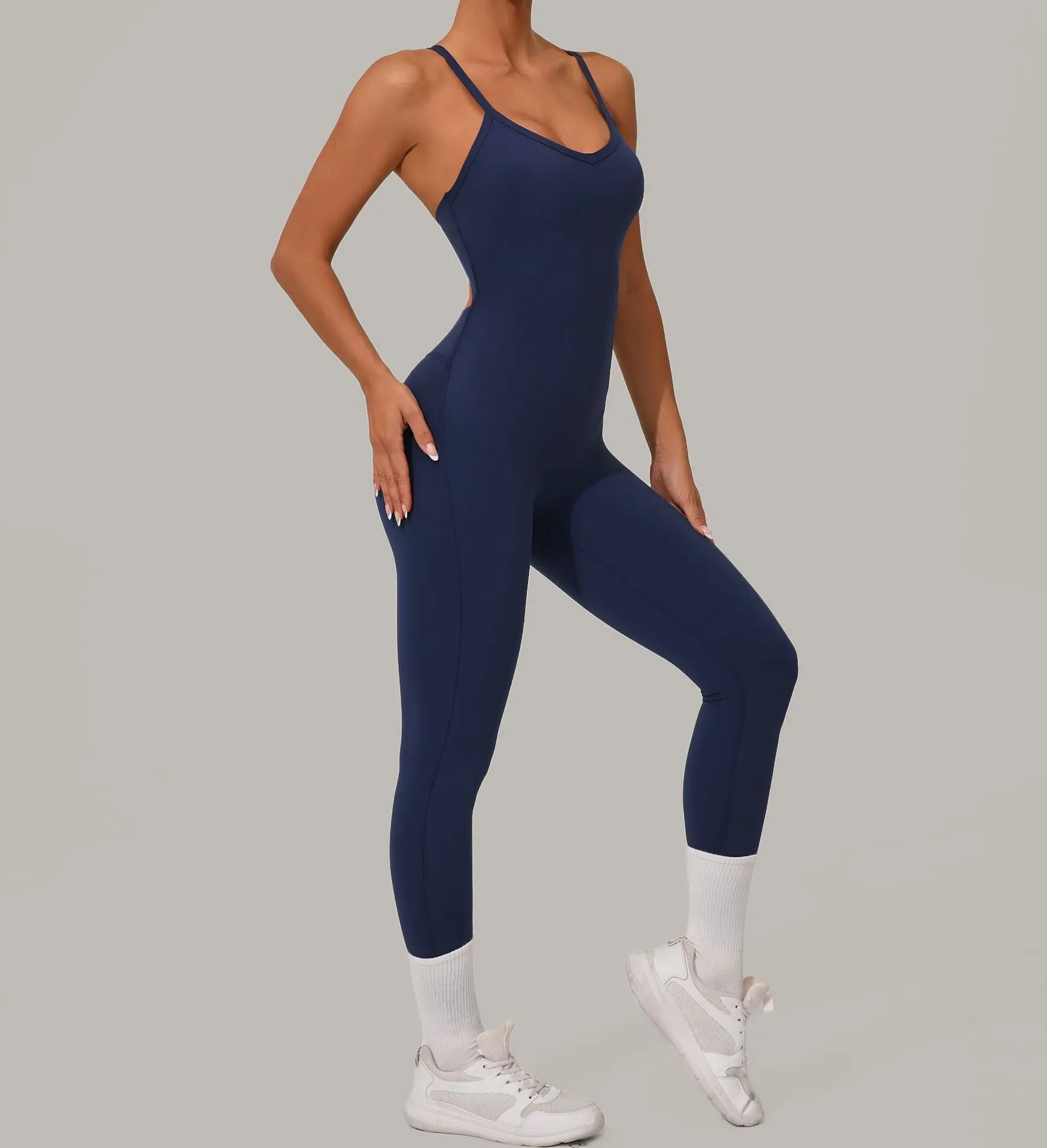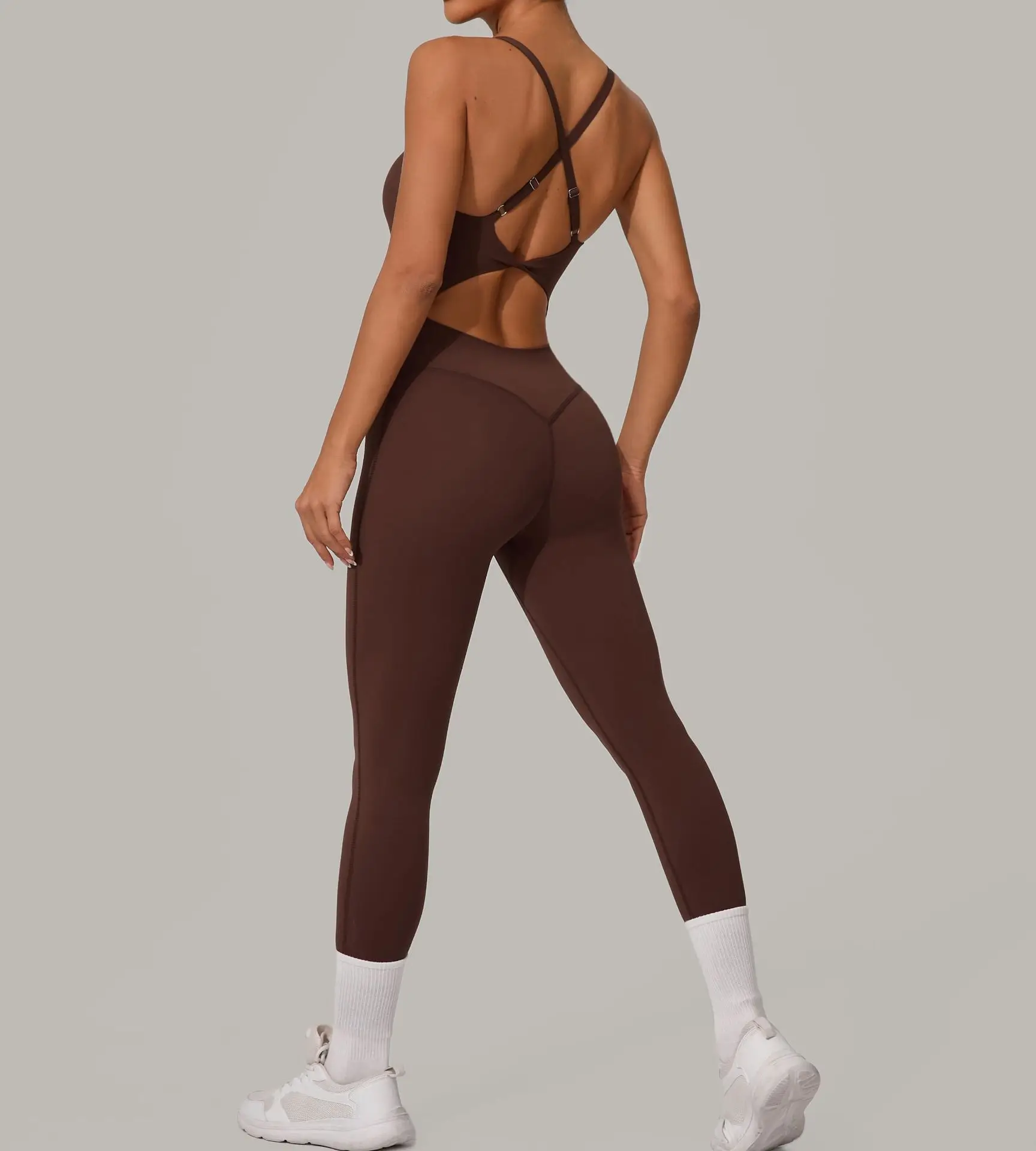 Sexy Hollow Cross Backless Sporty Tight Jumpsuit Woman Sportswear Summer One Pieces Outfit Gym Fitness Overalls Yoga Jump Suit