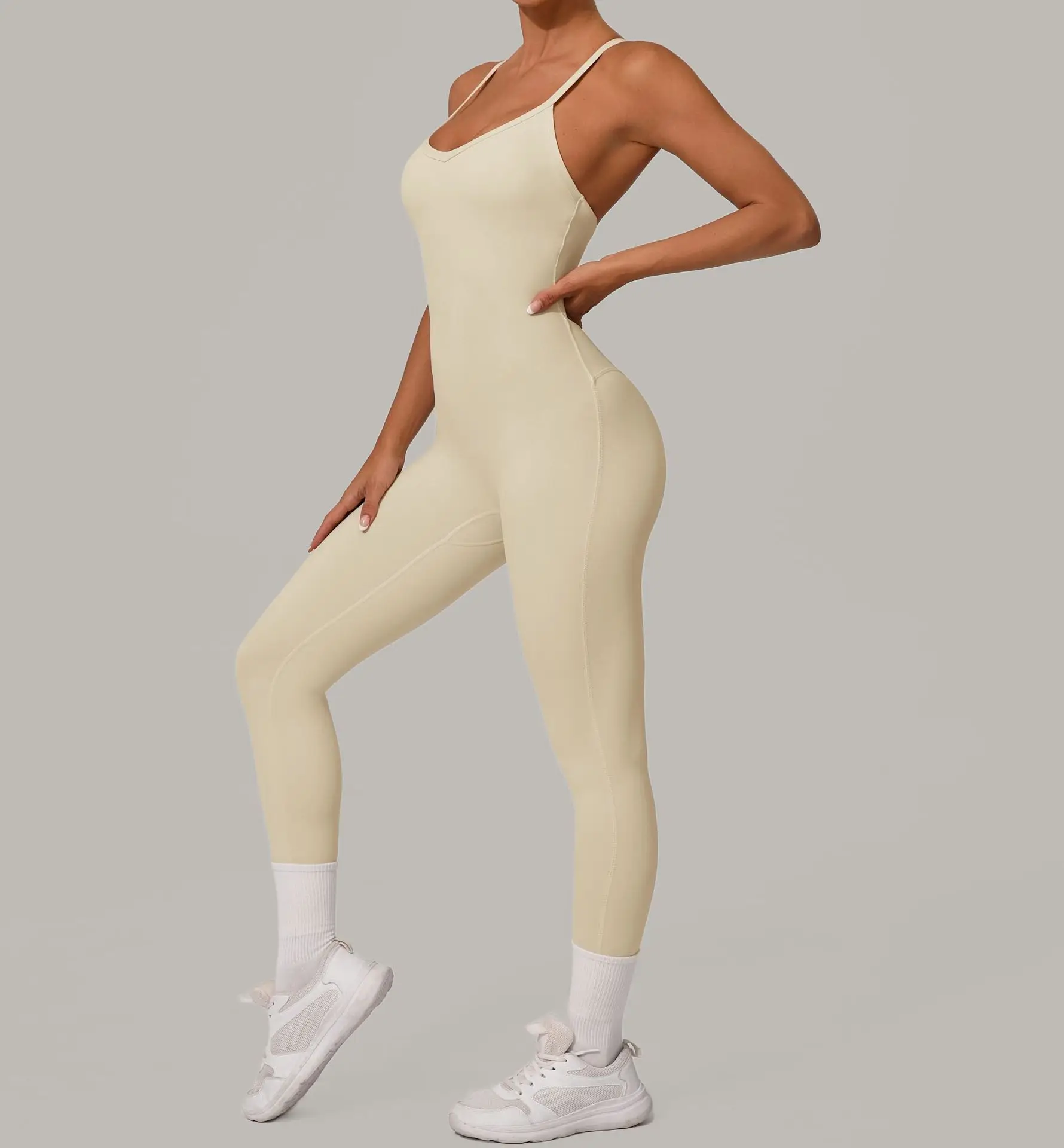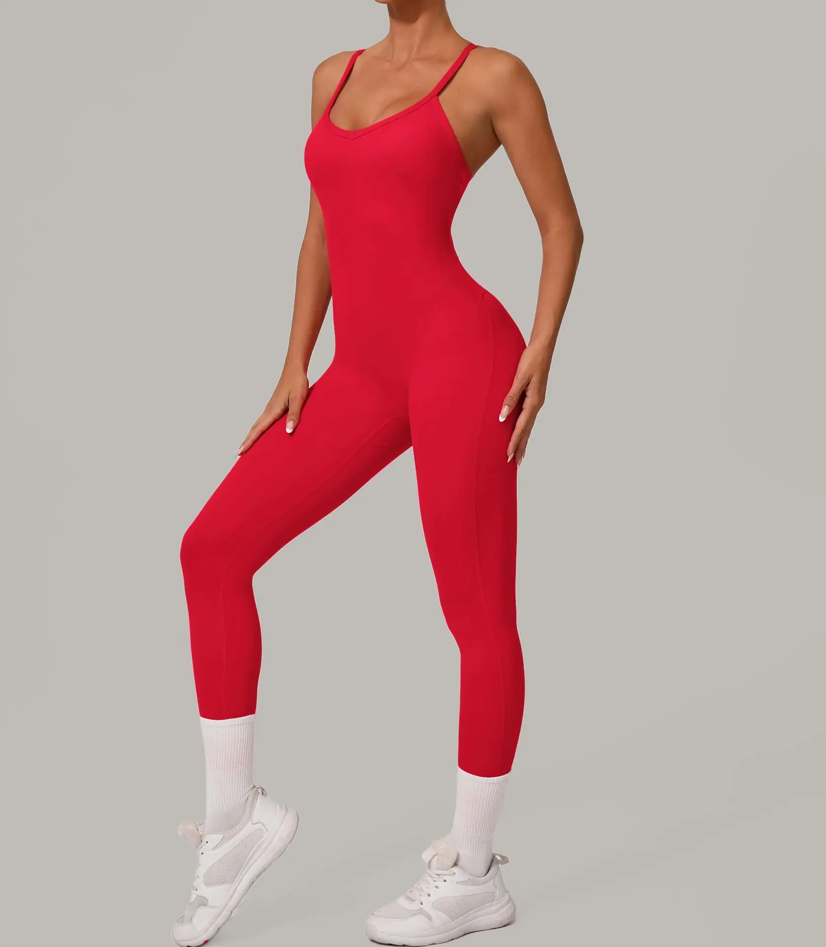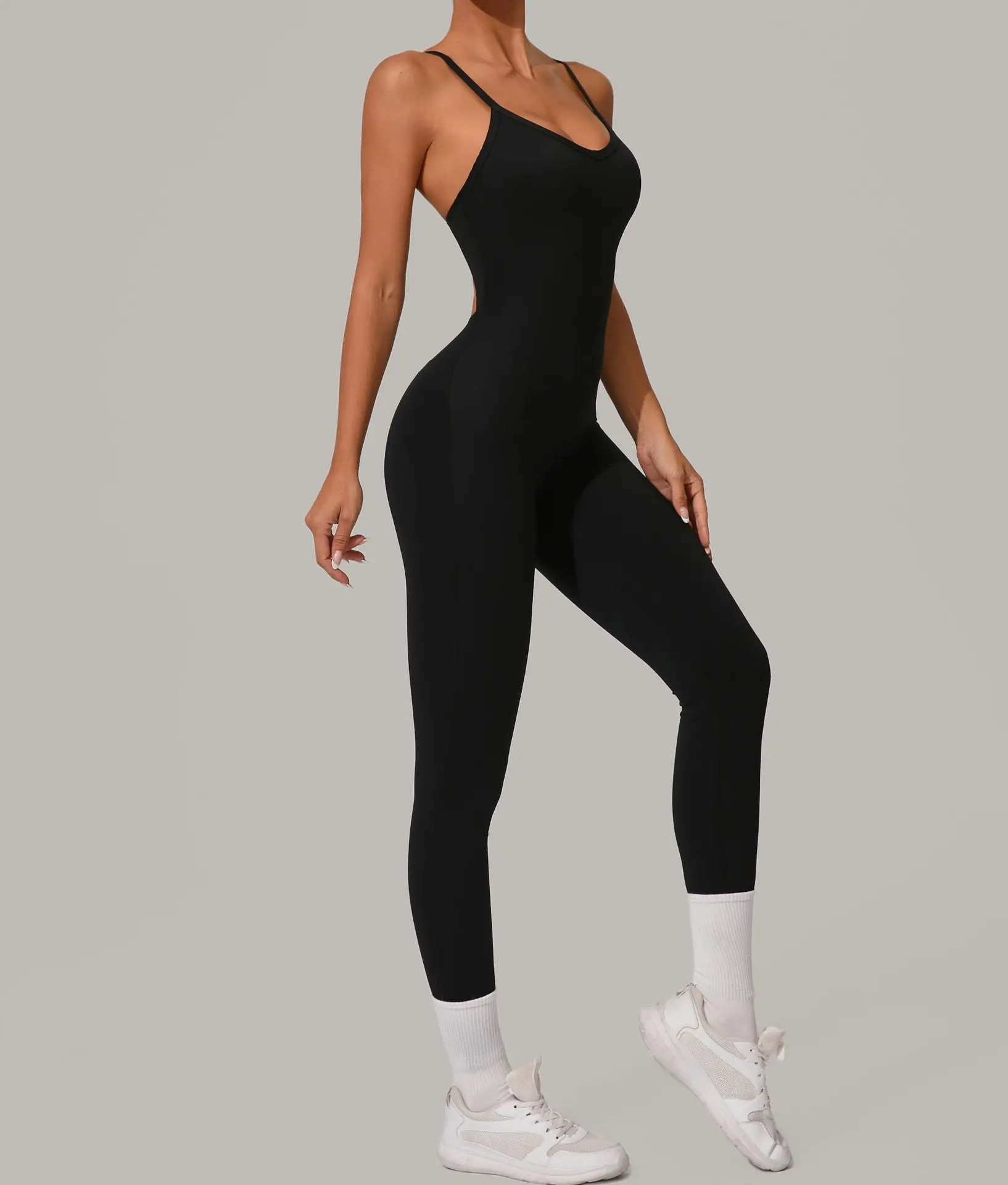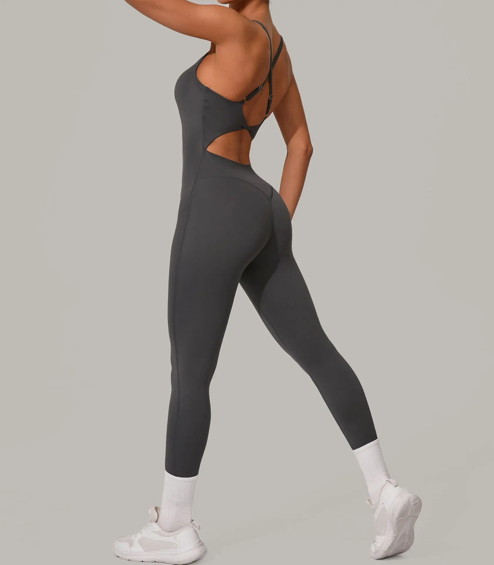 Sexy Hollow Cross Backless Sporty Tight Jumpsuit Woman Sportswear Summer One Pieces Outfit Gym Fitness Overalls Yoga Jump Suit