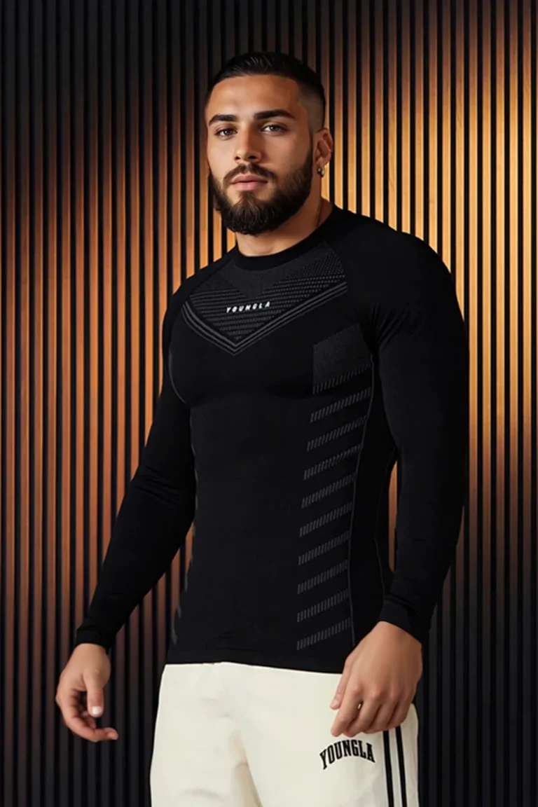 Spring Autumn Men Slim Fit Casual Elastic Training Top Long Sleeve T-shirt Fitness Sports Milk Silk Material Running Fitness