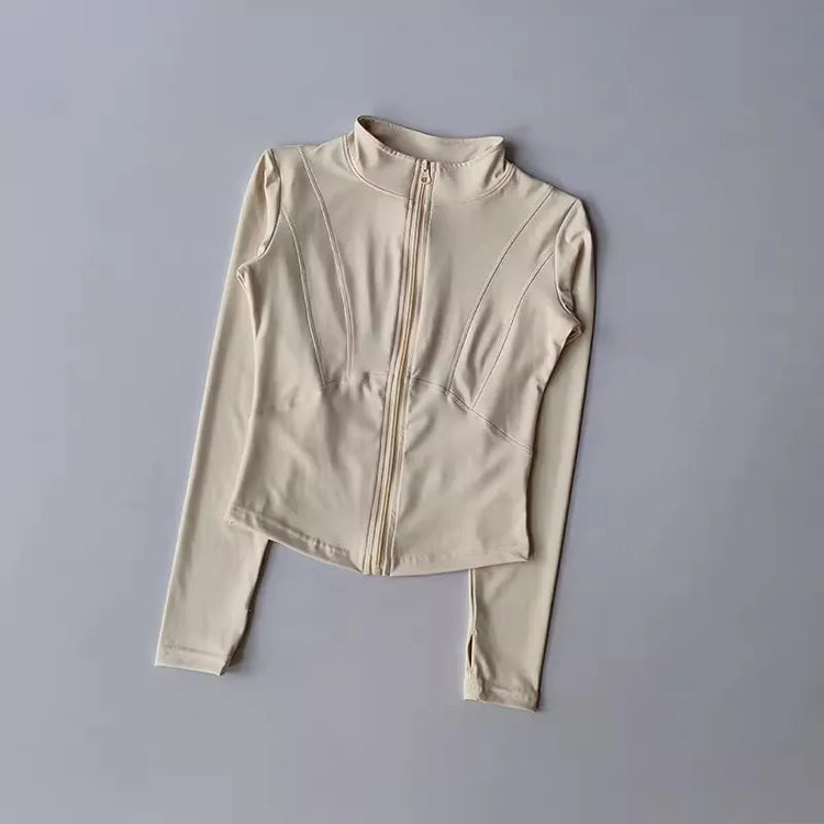 Women's Slim Fit Long Sleeved Yoga Exercise Jacket Stand up Collar Fitness Zipper Top Slimming Yoga Wear for Women